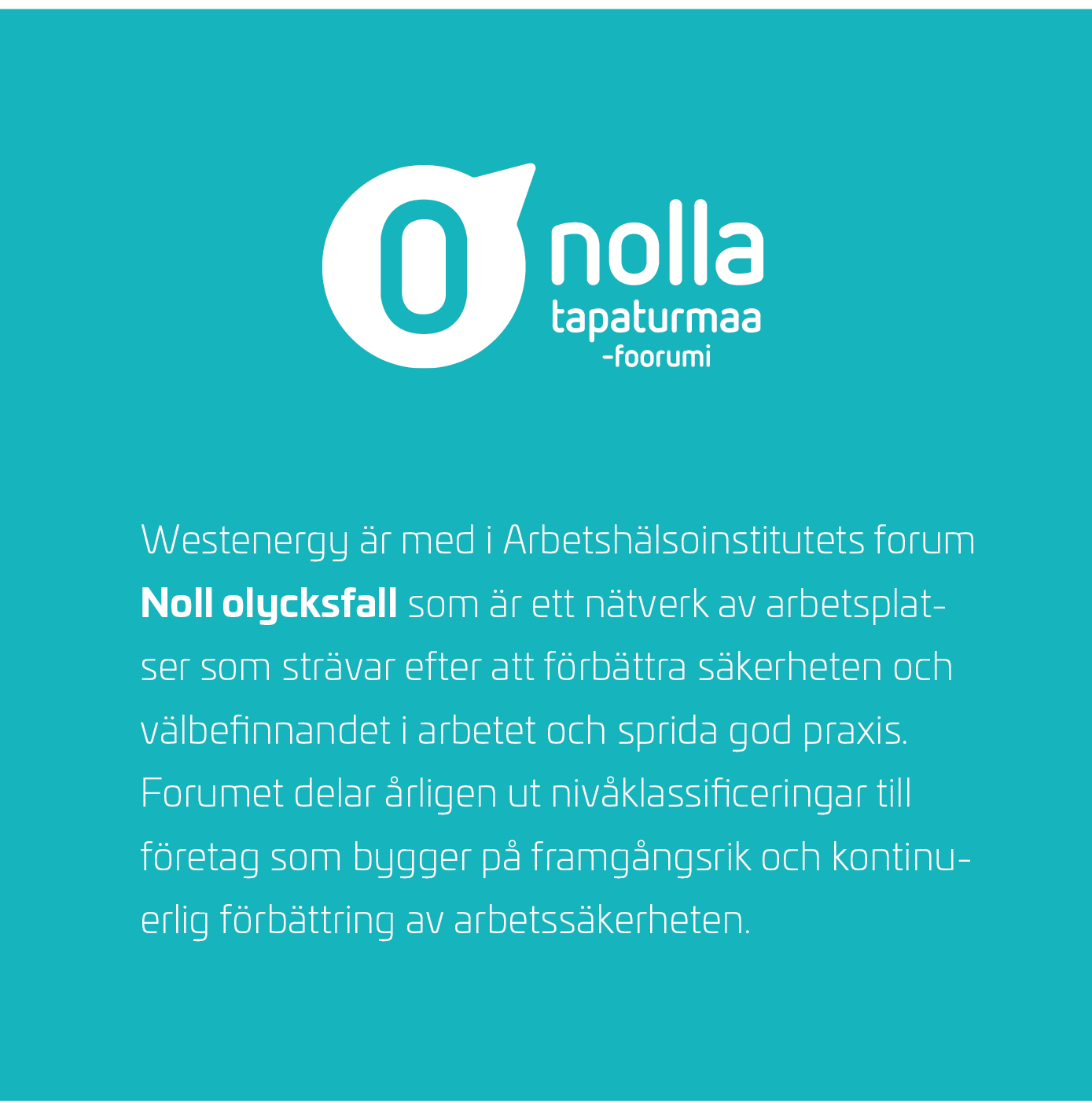På Westenergy strävar vi efter att få hela personalen engagerad i att förbättra säkerheten i arbetet. Förra året rapporterade personalen totalt 48 säkerhetsobservationer. Säkerhetsobservationer är iakttagelser av missförhållanden som kan orsaka risk för arbetsolyckor. På Westenergy hanteras säkerhetsobservationer dagligen, och varje situation och dess grundorsak försöker vi klargöra så noggrant som möjligt för att kunna förbättra säkerheten framöver. Rapporteringen av säkerhetsobservationer utvecklades och förenklades 2024 genom att införa anonyma pappersblanketter. Förra året vidareutvecklades den anonyma rapporteringsmetoden, och idag kan rapporteringen göras anonymt även digitalt.